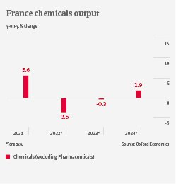 In 2021, French chemicals production grew by more than 5%. However, since Q2 of 2022 output and sales are facing decreasing demand from key buyer industries, and sharply increased input prices for commodities and energy. Additionally, high freight costs weigh on businesses´ financials.