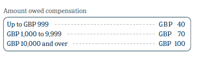 As well as interest, the supplier may also charge an amount to compensate for the costs of collecting late payments. The amount of compensation that can be claimed is determined by the outstanding amount as follows:
