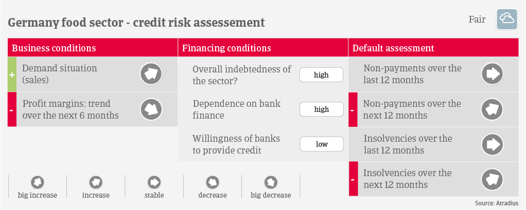Banks remain rather unwilling to provide loans to the industry, which has increased the importance of factoring as a financing tool. Payments in the sector take about 45 days on average, and we expect that the number of payment delays and insolvencies will each increase by about 10% in 2022, as pressure on margins continues and government support gradually expires. Mainly affected will be businesses in beverages, meat and food service subsectors. Smaller players with poor financial strength are most at risk to fail, in particular if they lack export opportunities and/or do not offer specific products.