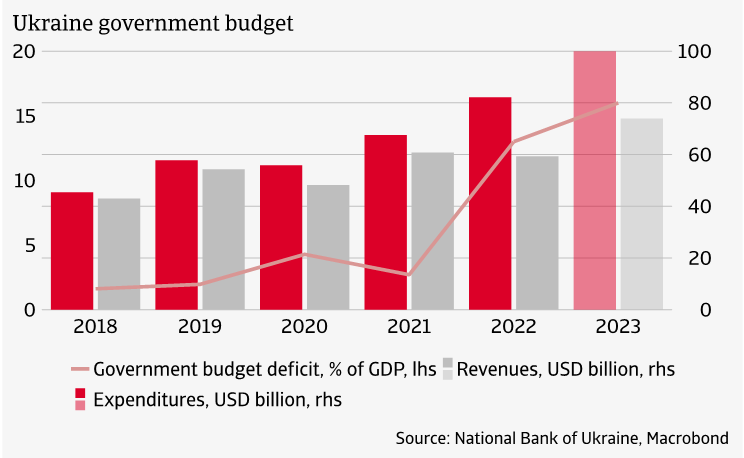 • Since the beginning of Russia's large-scale invasion, Ukraine has been paying a high humanitarian and economic toll. The economy shrank by almost one third in 2022 and the government budget was thrown significantly out of balance.