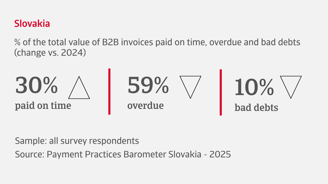 • Nearly two-thirds of the sales that Slovakian companies made on credit in B2B trade in recent months are overdue. This delay in payments is causing significant financial strain on businesses
