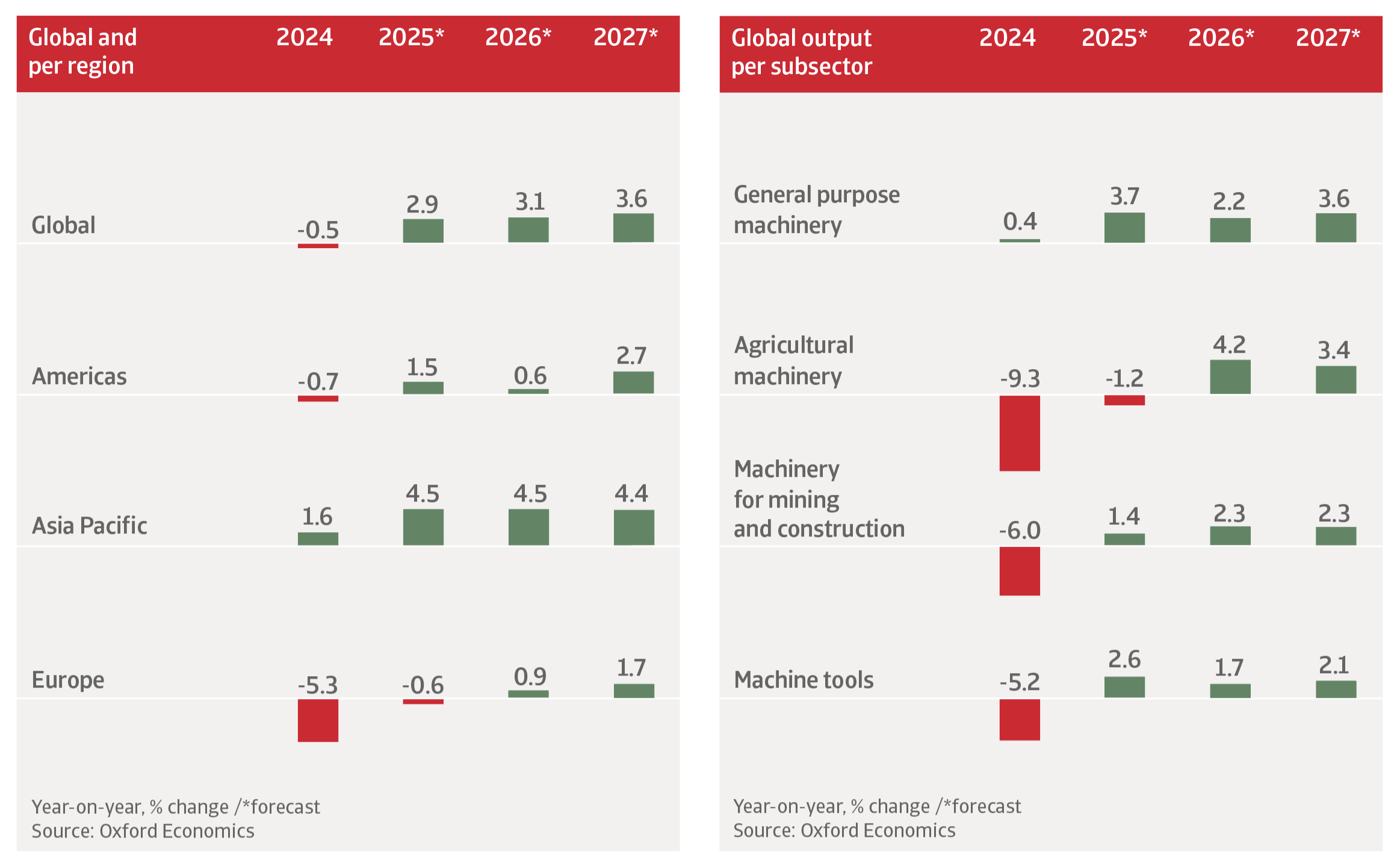 In 2027 we expect global mechanical engineering output growth to accelerate to 3.6%, as additional monetary easing expected in H2 of 2026 begins to feed through and defence spending increases, particularly in Europe.